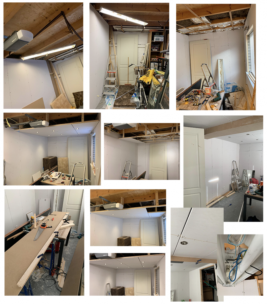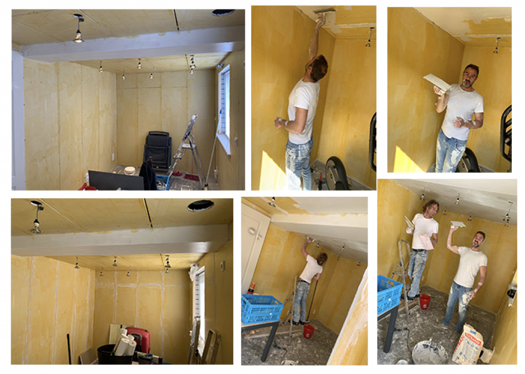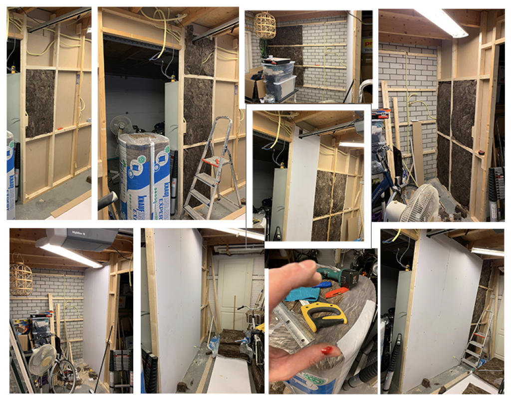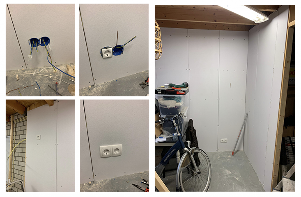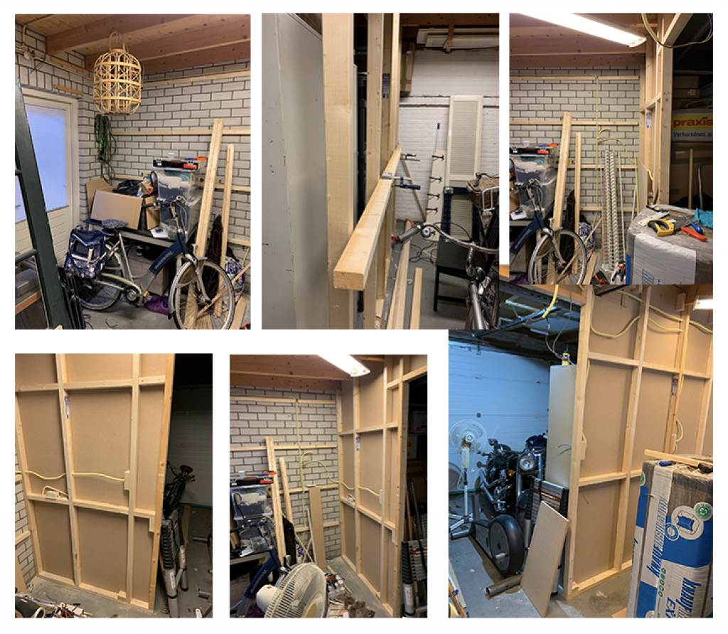 Una vez que terminas de poner el material de aislar, procedió a poner el frente de “las paredes”. La parte de enfrente, que ves blanca, es como tablaroca. Se llama aquí “gipsplaten” que traducido por google significa “panel de yeso”.